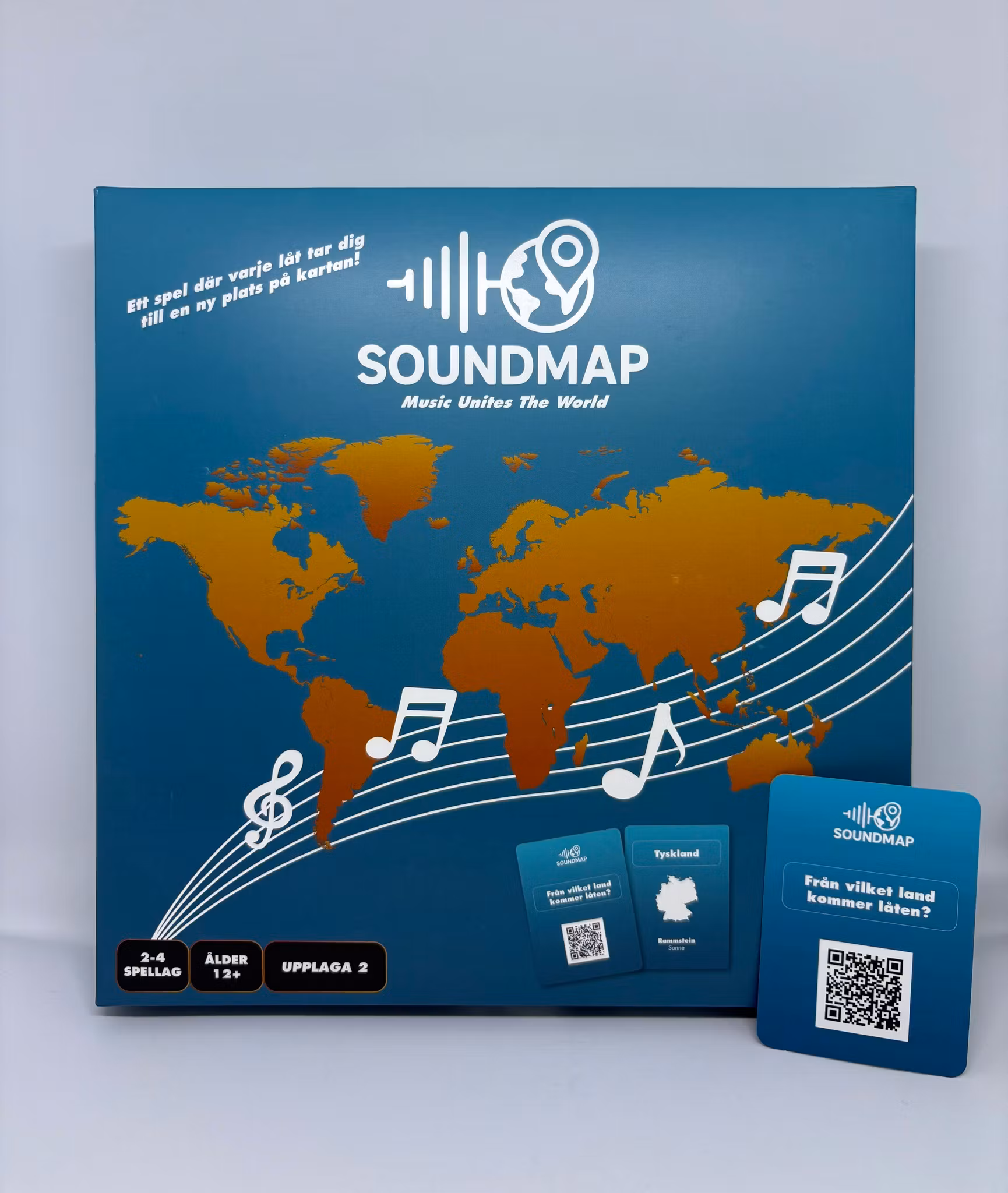 Varje spelkort har en framsida med en QR-kod och en fråga till, samt en baksida med rätta svaret. När man scannar QR-koden med mobilens kamera så kommer en låt sättas igång på Spotify. Därefter är det upp till dig och ditt lag att placera ut en spelpjäs på det landet ni tror t.ex låten eller artisten kommer från.